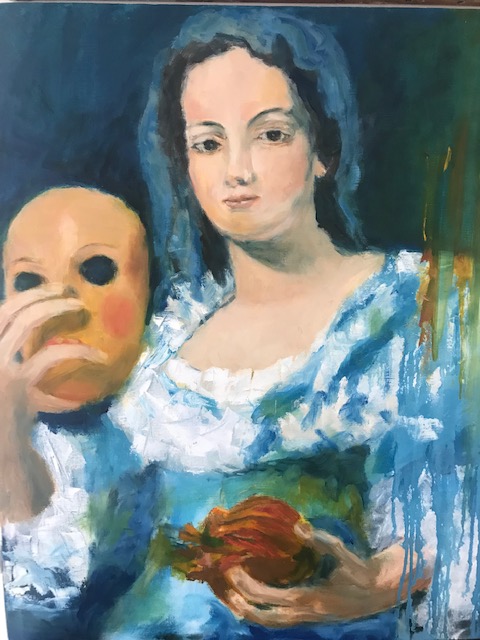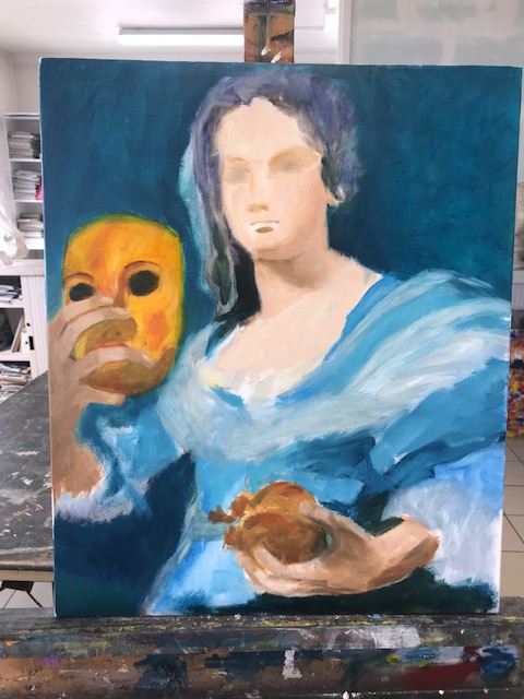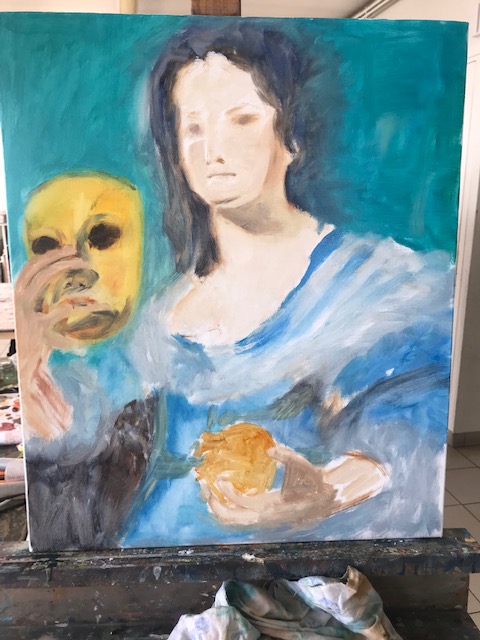 Cette semaine, aux Ateliers, j’ai encore travaillé sur le tableau de “la Femme au masque”.