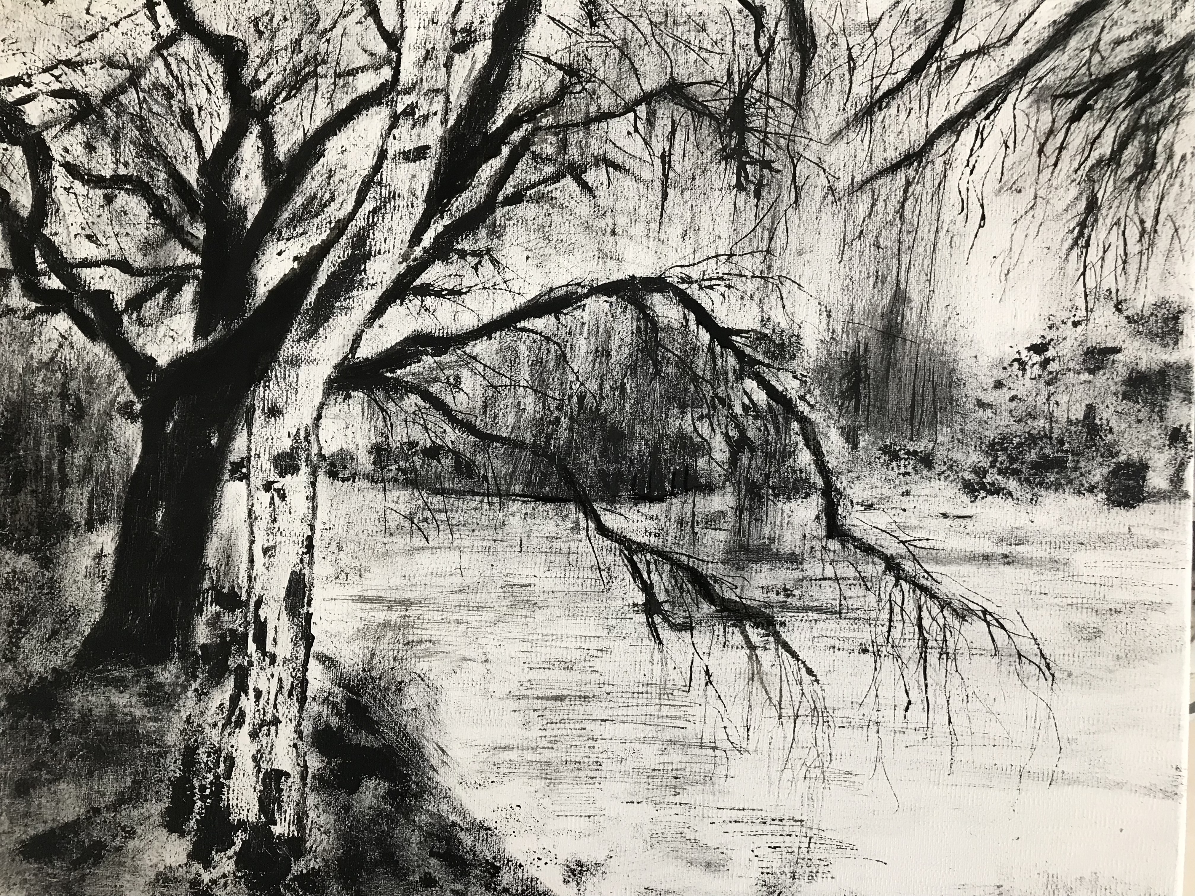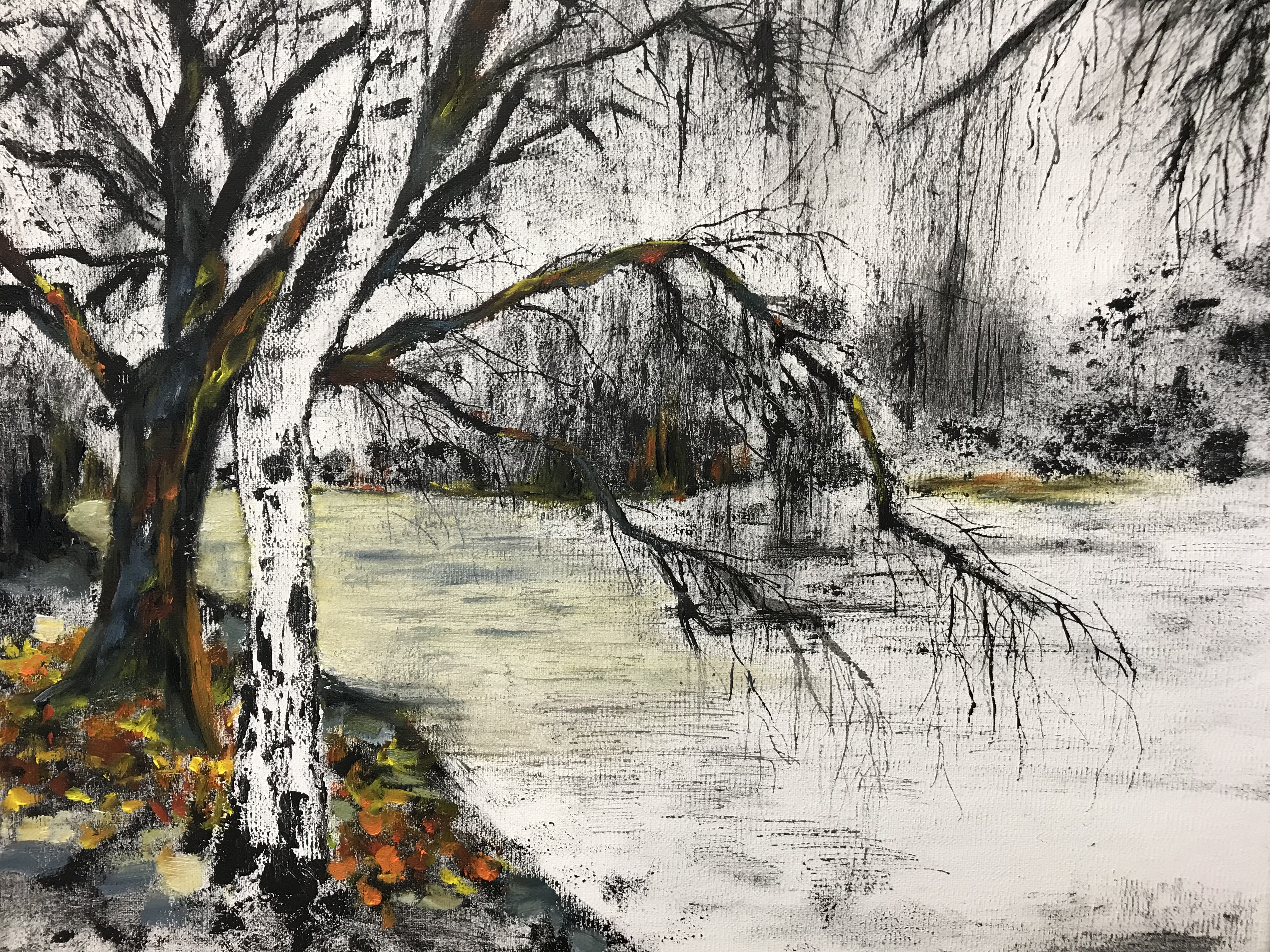 En noir on dirait une lithographie. avec la couleur déposée parcimonieusement on ressent que l’automne touche à sa fin et que l’hiver sera rude.On est proche des estampes japonaises.