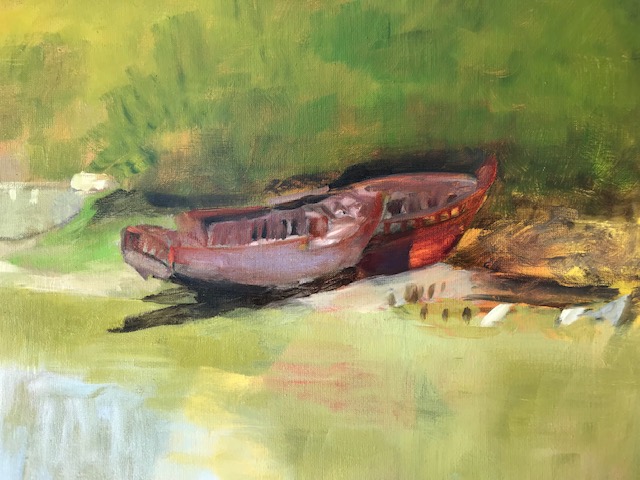 Le cimetière des bateaux de Pluneret (huile sur toile 46×55)