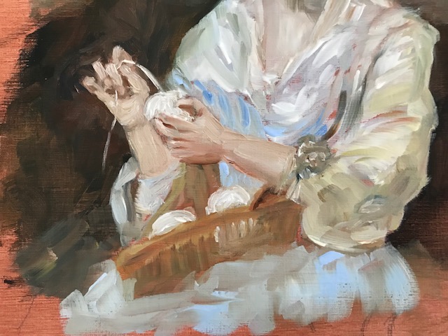 Je suis toujours à la recherche de modèles parmi les maîtres des siècles précédents. Aujourd’hui, j’avais envie de peindre des mains … un vrai challenge car c’est certainement l’une des choses les plus difficiles à dessiner ou à peindre !