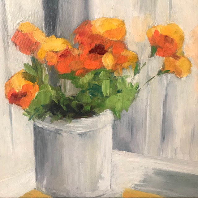 Cette fois, ce sont des fleurs en pot … histoire de mettre un peu de soleil dans la maison !