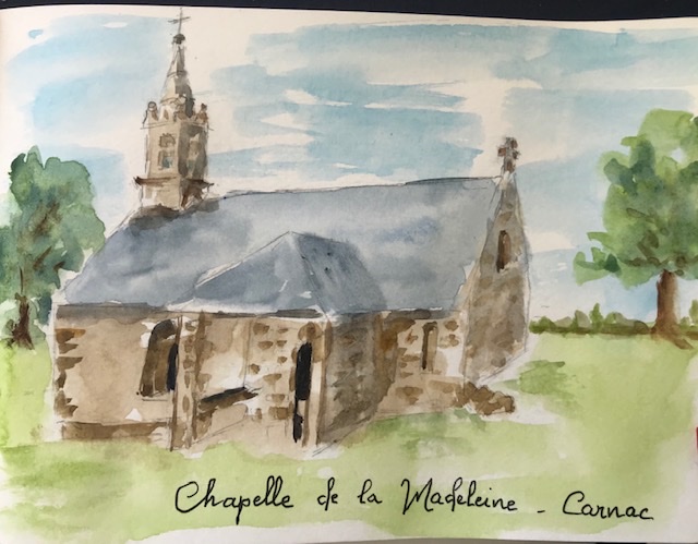 Je suis allée jusque Kerguéarec voir la jolie chapelle, construite au milieu des champs, en l’honneur de Marie-Madeleine. On peut y admirer également une jolie fontaine et un autel extérieur en pierre.