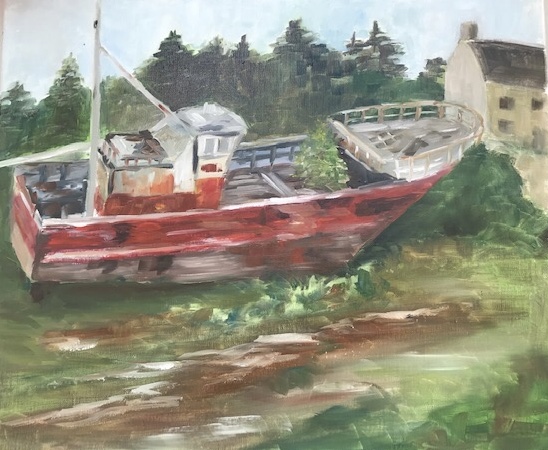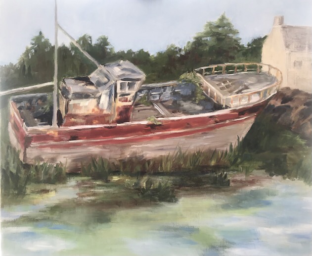 Vieille coque abandonnée à Plougasnou (huile sur toile 45×55)