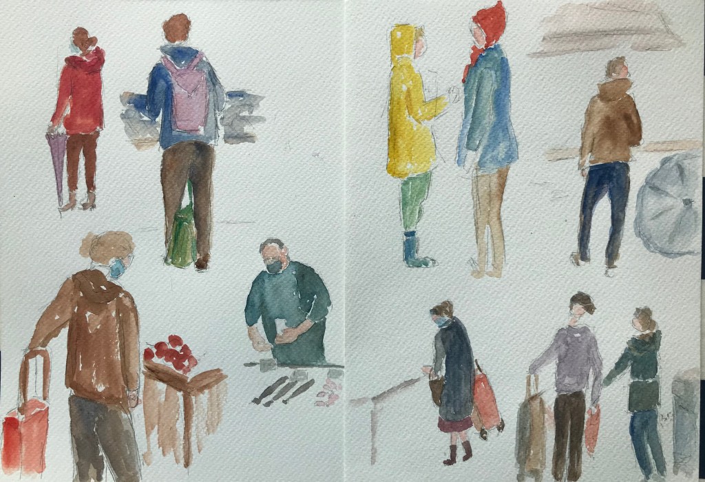 Nous avions rendez-vous devant les Halles des Lices, à Vannes, le but étant de ”croquer” des personnages durant le marché.