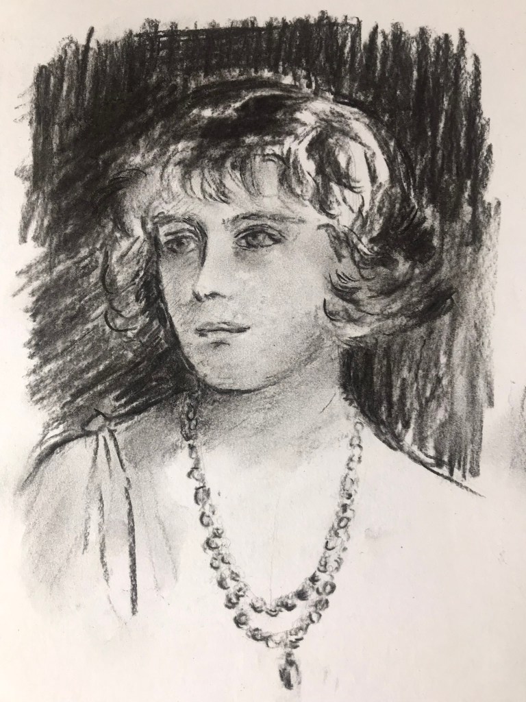 J’ai choisi de copier un portrait de John Singer Sargent, celui de Lady Elizabeth Bowes-Lyon que l’on retrouve dans plusieurs de ses tableaux.