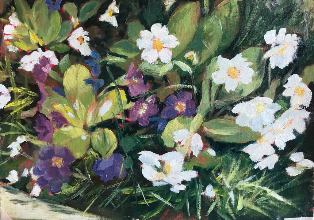 1. C’est très beau. La gamme de couleurs violettes est toujours un défi pour les mélanges avec des primaires, n’est-ce pas ? Je ne sais pas quelle teinte tu voulais obtenir. J’adore le résultat et la composition que vous avez faite.