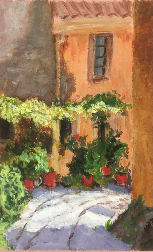 Je suppose que c’est une ruelle d’un village méditerranéen ? Ici froid le matin, pluie toute la journée … bises