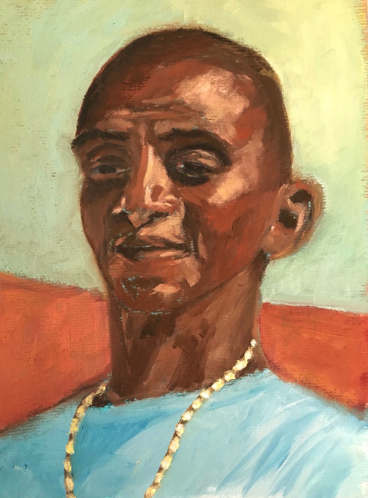 Il faisait suffisamment beau pour pouvoir travailler la fenêtre ouverte et j’ai eu beaucoup de plaisir à peindre à l’huile.