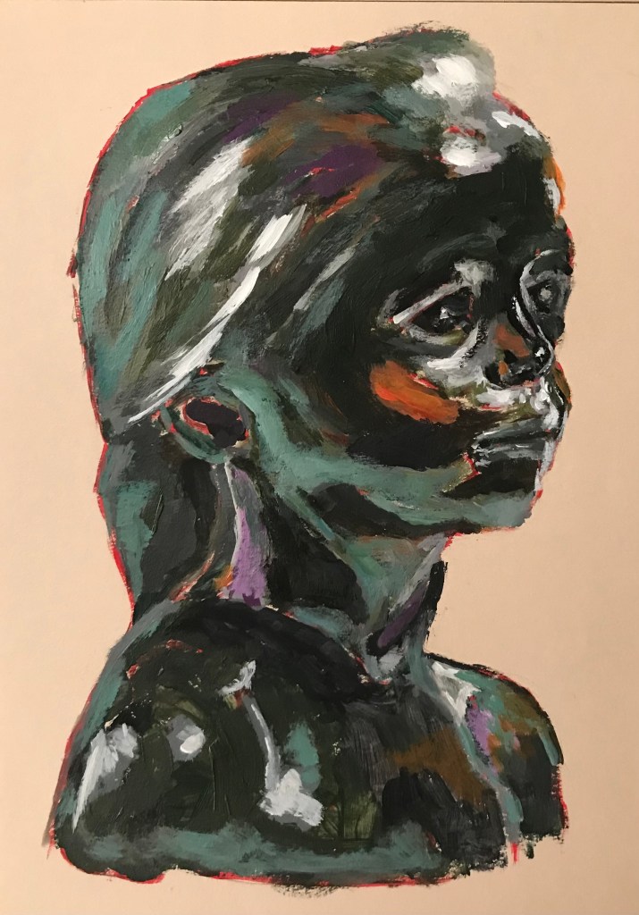 Dessiner ce joli visage, retrouver la couleur et la brillance du bronze … encore une fois, un exercice difficile mais intéressant.