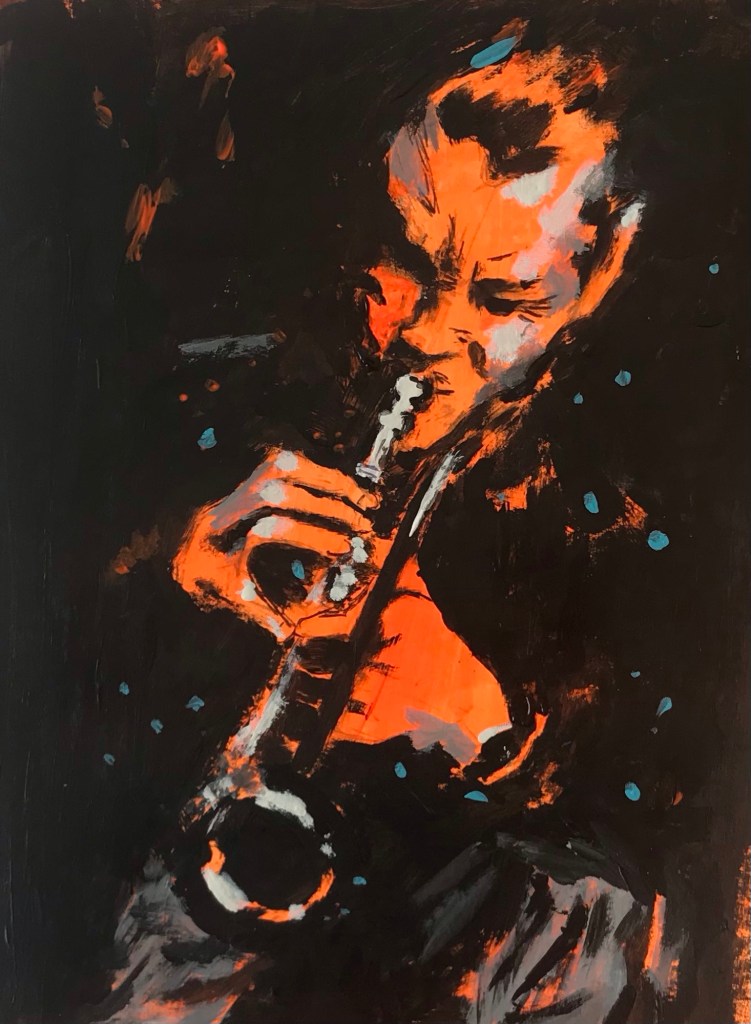 J’ai eu du mal … la trompette et ses mains qu’on distinguait à peine sur la photo m’ont paru particulièrement difficiles.