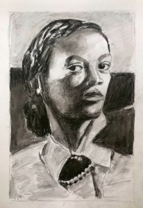 Dessin au crayon, ombres accentuées au graphite aquarellable.